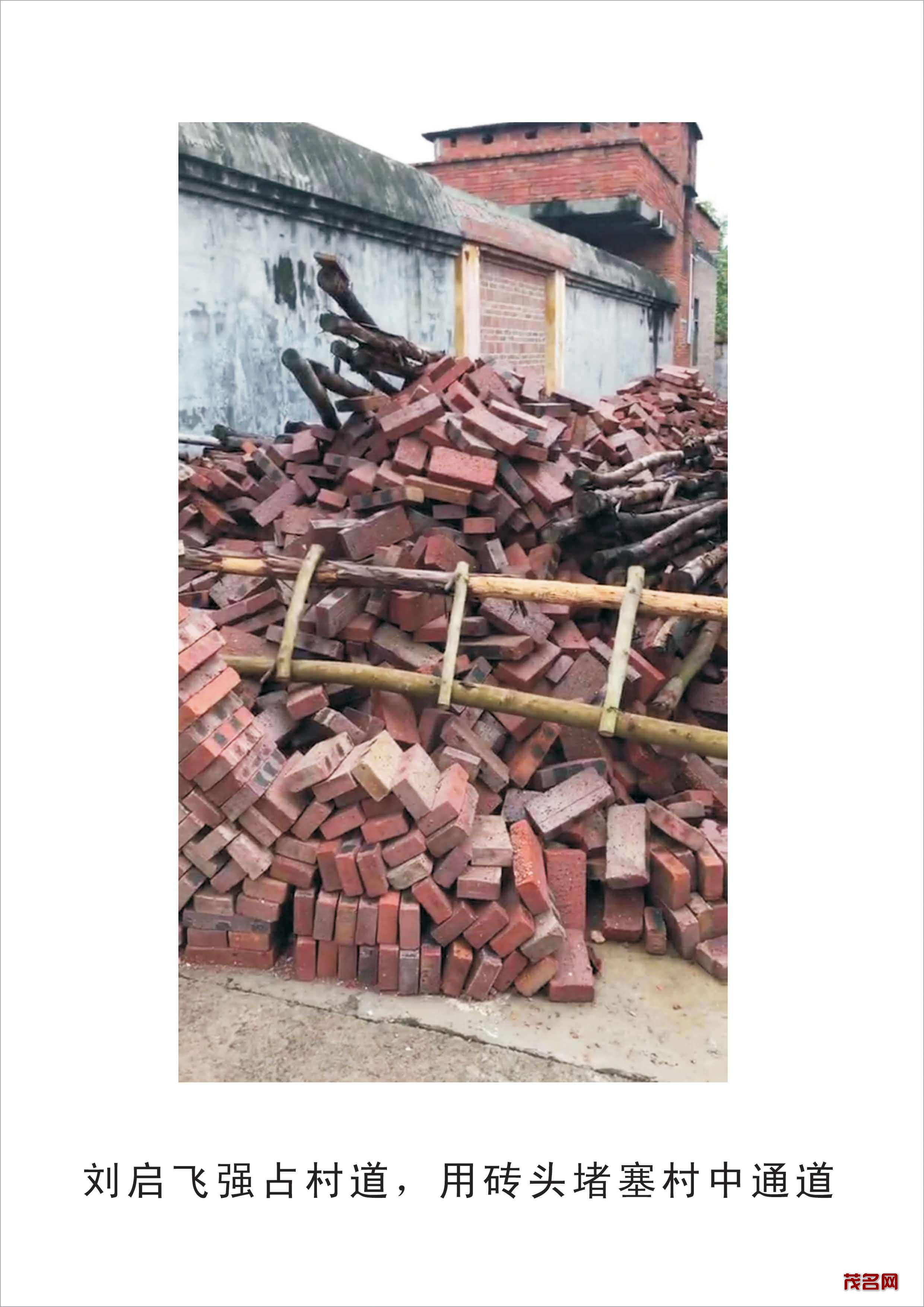 二、刘启飞用红砖、竹木堵塞村中道路,侵占村道占为己有。