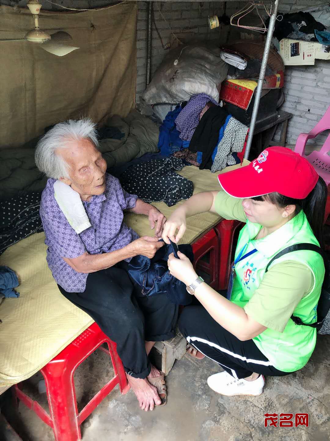 首先志愿者们来到大井镇六祥垭背村梁士英婆婆家中,今年90多岁的梁婆婆,儿媳因为家庭贫困而离家出走,只有她与儿子相依为命,儿子平时都在外面打散工。虽然梁婆婆双目失明,但是平时的生活起居都是自己照顾自己。当志愿者们踏入梁婆婆家里时,看到她正在摸索着缝补衣服,志愿者们马上接过针线帮她缝补衣服,一边跟梁婆婆聊家常,仔细的询问她的健康状况以及生活情况。虽然梁婆婆的眼睛看不见,但她能感受到我们志愿者对她的那份关怀,抚摸着志愿者帮她缝补好的衣服,不断地说:“谢谢!谢谢!……”用朴实的话语表达着对大家感激之情。最后,志愿者们拉着梁婆婆的手,并叮嘱她保重身体,乐观地生活着。