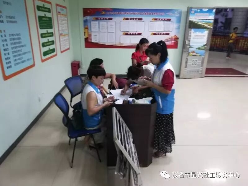 星光社工在签到台组织志愿者们签到