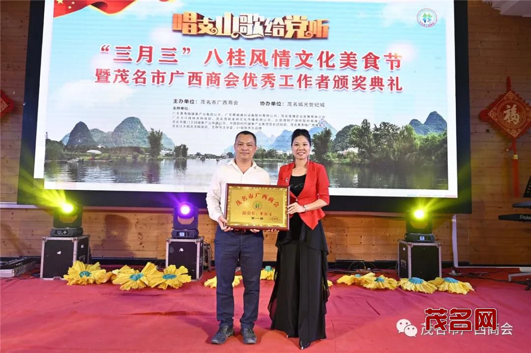 茂名市政协副主席黄辉,市委统战部常务副部长龚朝文为商会优秀工作者颁发证书