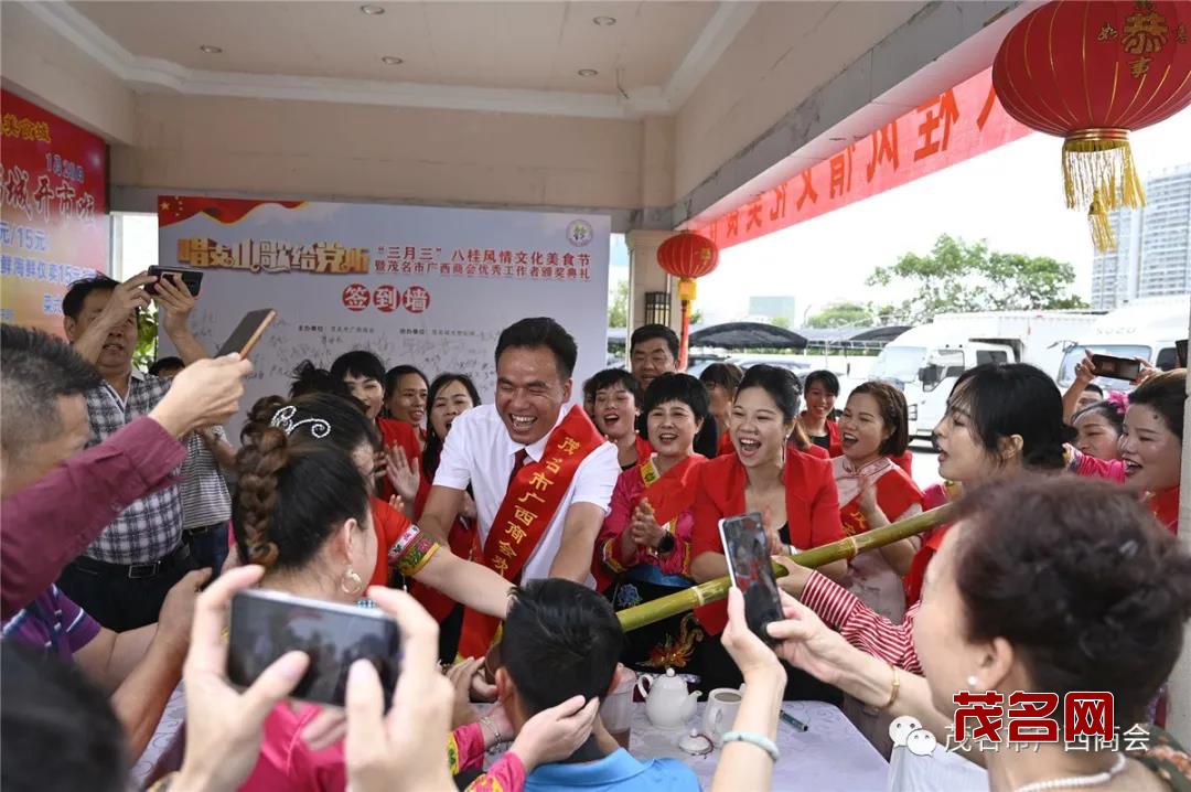 据悉,农历“三月三”在广西,不仅是壮族传统踏青歌节,同时也是广西汉族、瑶族、侗族、苗族等民族传统节日。每到三月三,广西各地都会举办丰富多彩的民俗节庆活动。茂名有20多万广西人在此生活创业。为让这些广西乡亲度过一个愉快的“三月三”,商会精心准备好家乡的美酒、美食和广西传统文化节目,召集在茂名工作和生活的广西乡亲们在茂名欢度“三月三”,唱山歌颂党恩,品美食尝乡味,零距离感受广西民俗风情。在茂名也能开开心心过“三月三”。
