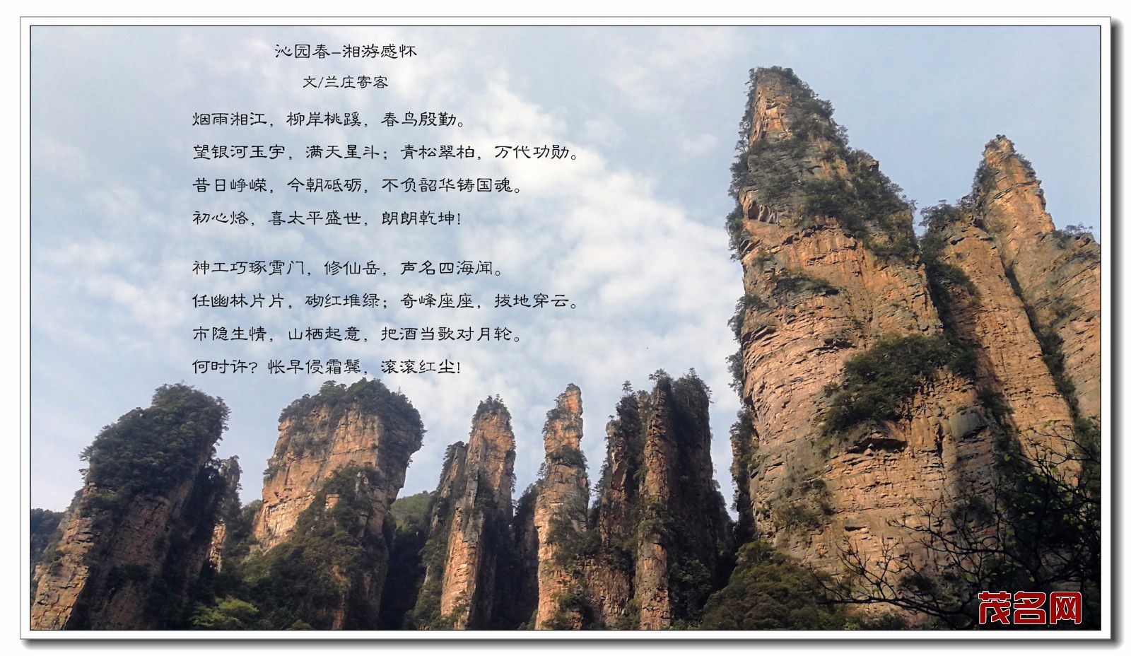暮春畅游湖南,此行先后游览了橘子洲头、毛主席故里、张家界国家森林公园、天门山、芙蓉镇、凤凰古城、墨戎苗寨等景点,更观看了《张家界千古情》大型歌舞演出,特赋组诗词联作记。