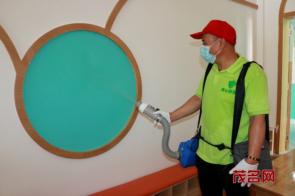 生命至上,健康至上,特别是还处疫情期间,健康与安全必需放在首位,该园负责人梁总介绍地说,为保障学子们有一个健康、舒适的学习环境,特聘请了专业除甲醛公司-茂名市清华创富环保公司,正开展紧张的除甲醛环保工程作业,净化室内空气。