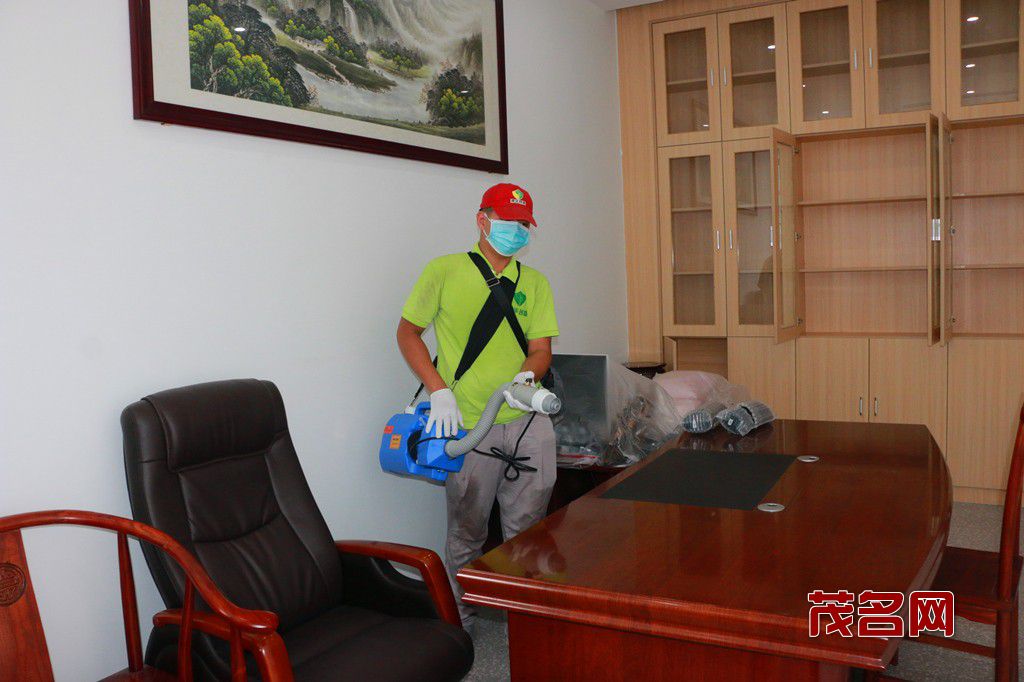 当天, 茂名市清华创富环保公司专业人员全副武装,应用目前先进的装备、技术和清除剂,针对校区的教室、教具、桌椅、走廊、画墙、天花等场所,进行地毯式除甲醛行动,将有可能危害少年儿童健康的甲醛等有害物全部清除。