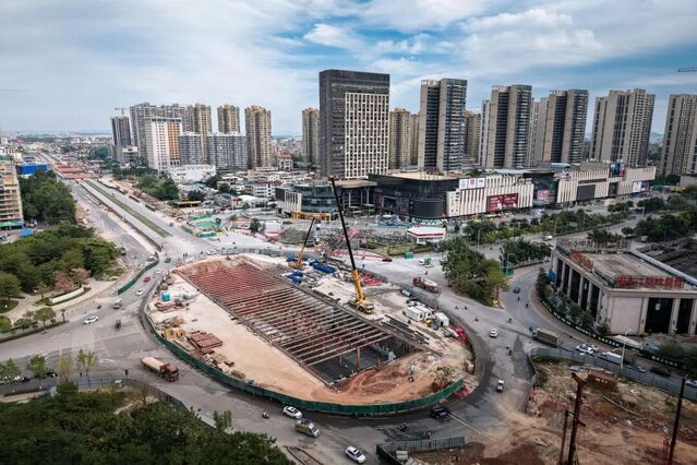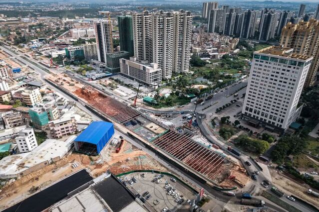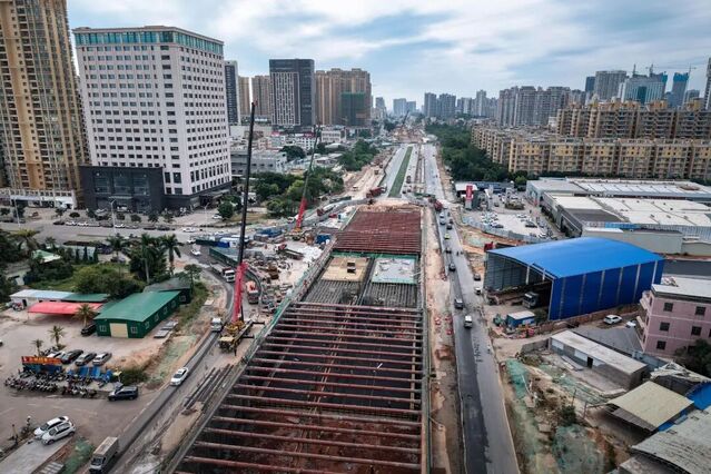 以上2图,茂名大道快速化改造工程市民大道节点建设现场。
