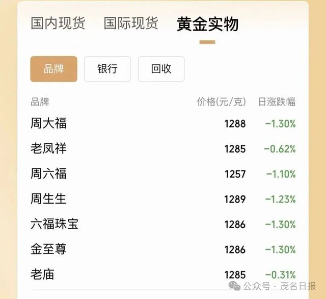 国内品牌金饰价格也随之下调