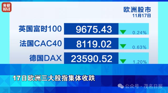 17日欧洲三大股指集体收跌