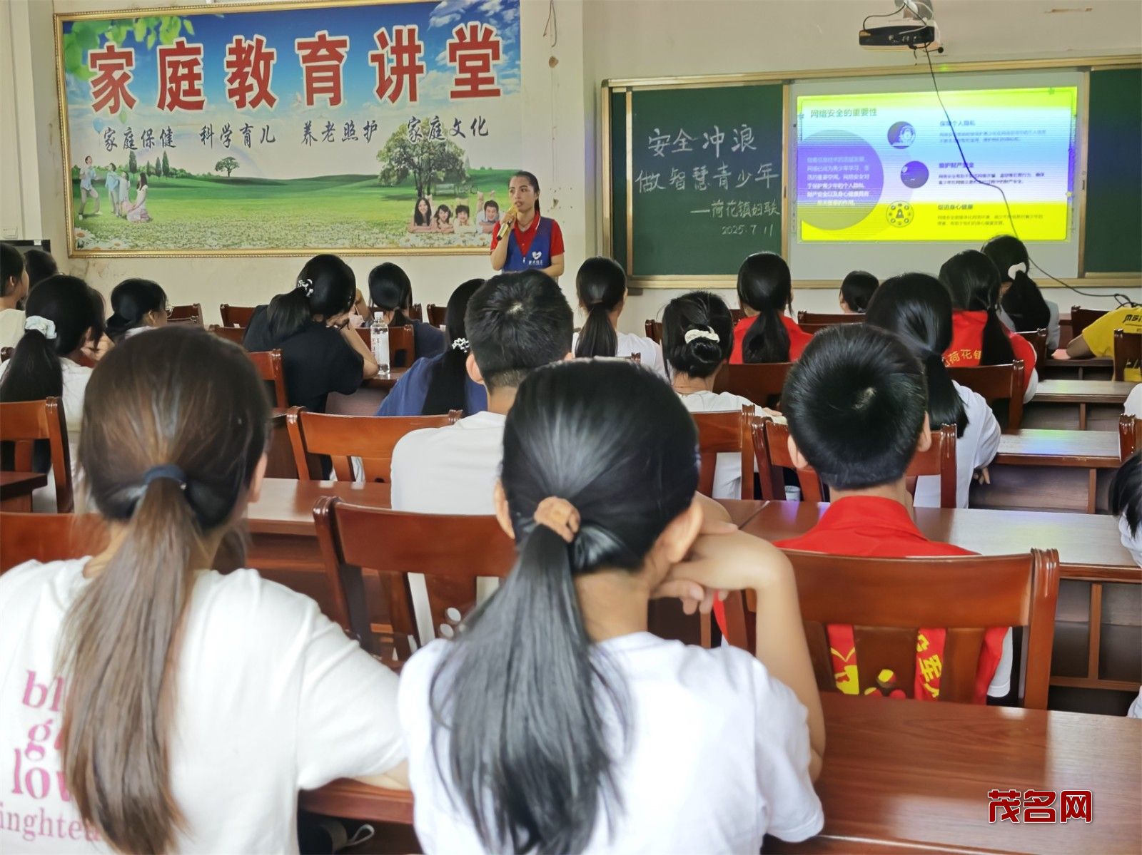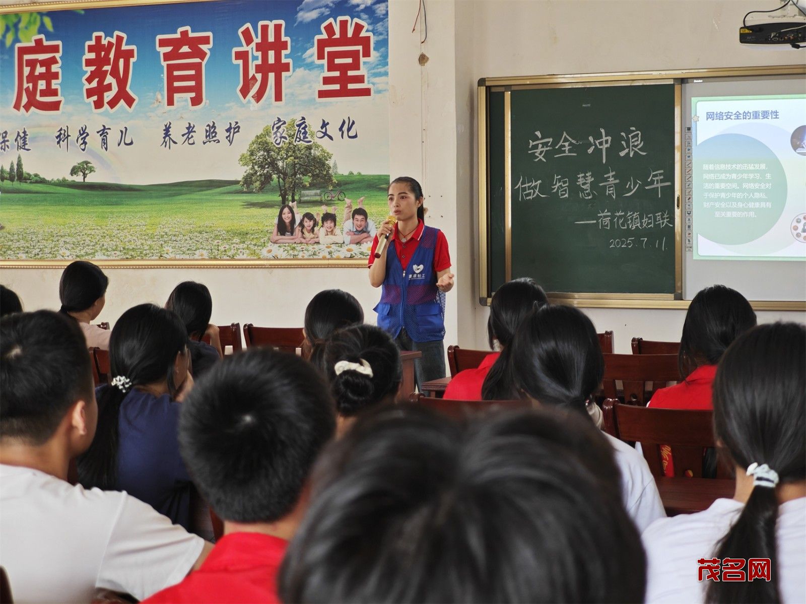 此次活动由高州市巾帼志愿者协会荷花镇巾帼志愿队主导,联合荷花镇妇联及退役军人服务站共同举办,旨在帮助青少年树立正确的网络安全观念,提升他们的网络素养和自我保护能力,让孩子们在纷繁复杂的网络世界中学会“安全冲浪”。