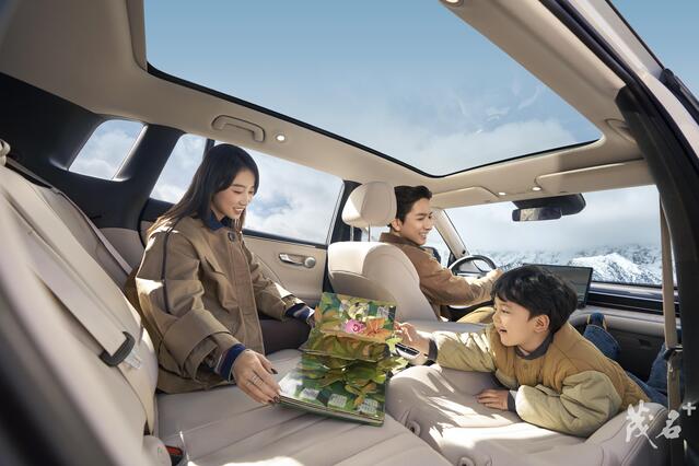 埃安i60在配置层面实现"降维打击",将多项20万级车型专属配置纳入全系标配。家庭用户最关注的舒适性配置方面,近90°后排开门角度方便儿童座椅安装,主副驾8点式按摩座椅、支持20度无级可调的后排靠背(最大137度半躺角度)、可承重10kg的后排小桌板等配置,大幅提升长途出行幸福感。