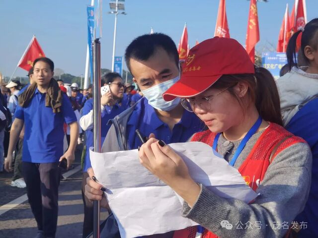 在信宜分会场,自12月1日起,信宜市迅速发动14支志愿团队组建起200余人的骨干队伍。12月3日,各团队负责人提前实地勘察13公里生态廊道全线,结合运动活力、湖光山色、人文地标三大主题路段特点,制定“一点一策”岗位方案。活动当天清晨6时30分,志愿者全员到岗,与公安、城管、交通等部门无缝对接,在物资补给、路线指引、秩序维护、应急协助等岗位上筑起牢固的“安全屏障”。