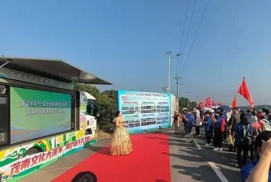 途中,茂南文化大篷车文艺小分队献上精彩表演,动听歌声点燃众人前行动力,原本热闹的徒步队伍更活力四射。