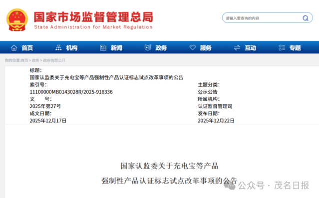 据介绍,近年来,充电宝、燃气燃烧器具、电动自行车等高风险领域陆续发生多起质量安全事件,不断威胁消费者人身安全。在相关事件的调查认定中发现,现行强制性产品认证(CCC认证)标志实施于20多年前,不具备认证信息的可追溯性,消费者与监管部门无法通过CCC认证标志获取生产者名称、认证证书编号、产品规格型号等关键信息,造成质量溯源与责任认定困难。