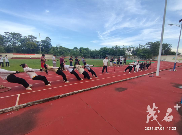 赛场上,七迳镇队伍队积极热身。随着裁判哨声响起,队员们迅速进入状态,紧握长绳、双脚蹬地、身体后倾、咬紧牙关,齐声喊着“一二、一二”的口号协同发力,场外啦啦队呐喊声此起彼伏,现场气氛迅速高涨。从小组赛到半决赛,七迳镇队伍一路过关斩将,以默契配合和顽强耐力连克强敌,最终以“劲往一处使,拧成一根绳”斩获比赛佳绩。