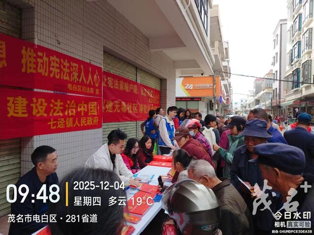 12月4日,热闹非凡的七迳圩开展了一场大型的禁毒宣传活动。此次活动由茂名市总工会联合七迳镇禁毒办、司法所、综治办等多部门联合开展,茂名市总工会党组书记、常务副主席曹梅芳带领工作组参加了此次宣传活动,七迳镇党委副书记罗志勇全程陪同。吸引了众多群众积极参与,现场气氛热烈且有序。