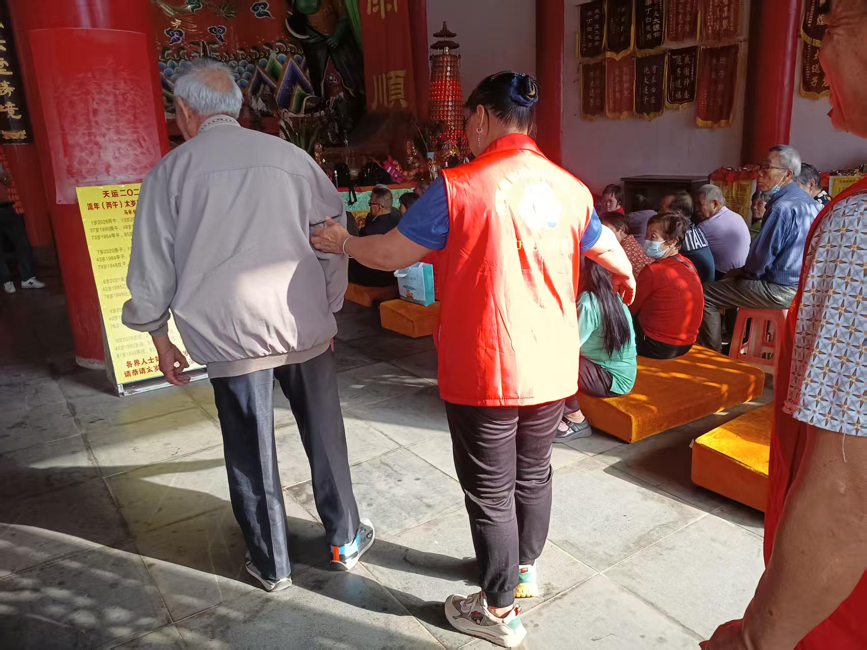 活动进行中,志愿者们坚守岗位、各司其职,耐心引导人流、维护现场秩序、贴心答疑解惑,确保祈福仪式与文艺表演平稳顺畅,让远道而来的群众安心参与、舒心祈福。