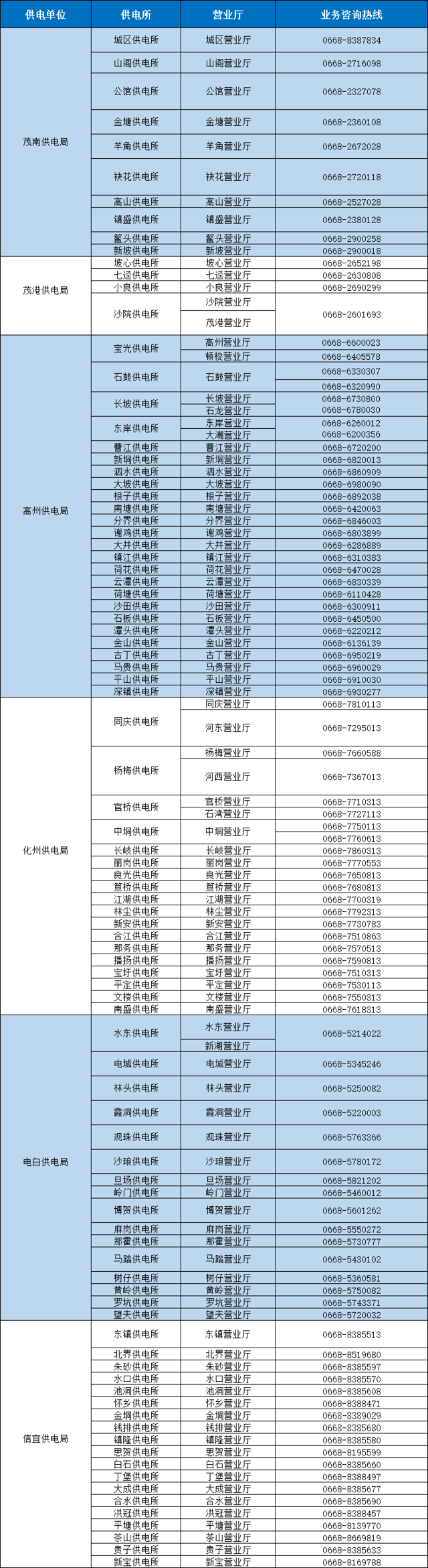 南方电网广东茂名供电局关于清退销户用户预付电费的公告用户清单